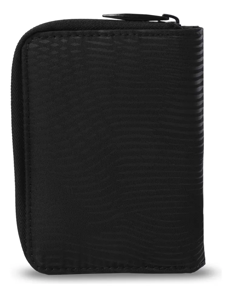 La Billetera Totto Texture Twi en color negro es el accesorio ideal para quienes buscan seguridad y orden. Fabricada en poliamida resistente y ligera, cuenta con tecnología RFID Blocker para proteger tus tarjetas de clonaciones. Su diseño de dos cuerpos incluye cierre en broche, organizadores para billetes, múltiples ranuras para tarjetas y un bolsillo dedicado para monedas. Compacta, elegante y funcional, es la solución perfecta para el día a día