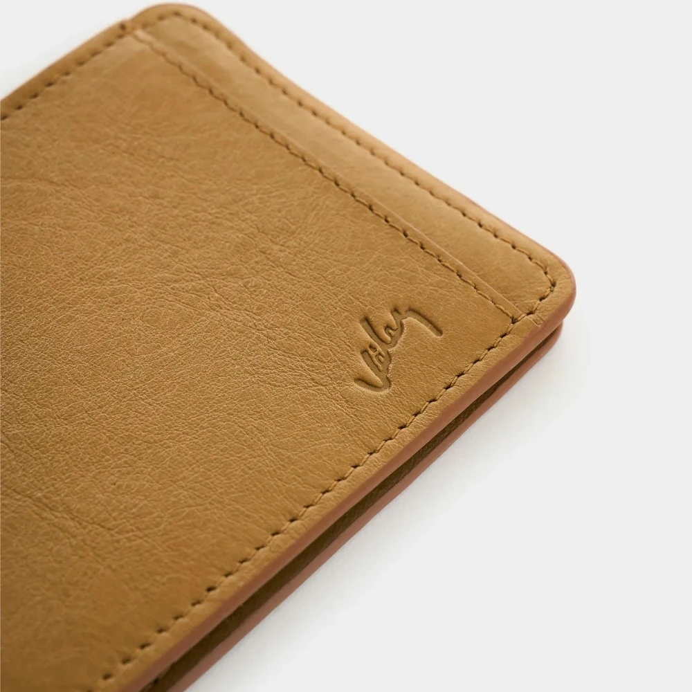 La esencia de la billetera Lira reside en su material. Elaborada íntegramente en cuero bovino de alta calidad, destaca por su textura lisa y un acabado que resalta la belleza natural de la piel. El color miel es un tono atemporal y versátil que evoluciona con el tiempo, adquiriendo un carácter único con el uso diario. Al ser un producto de origen natural, cada pieza cuenta una historia diferente a través de sus vetas y suavidad al tacto.