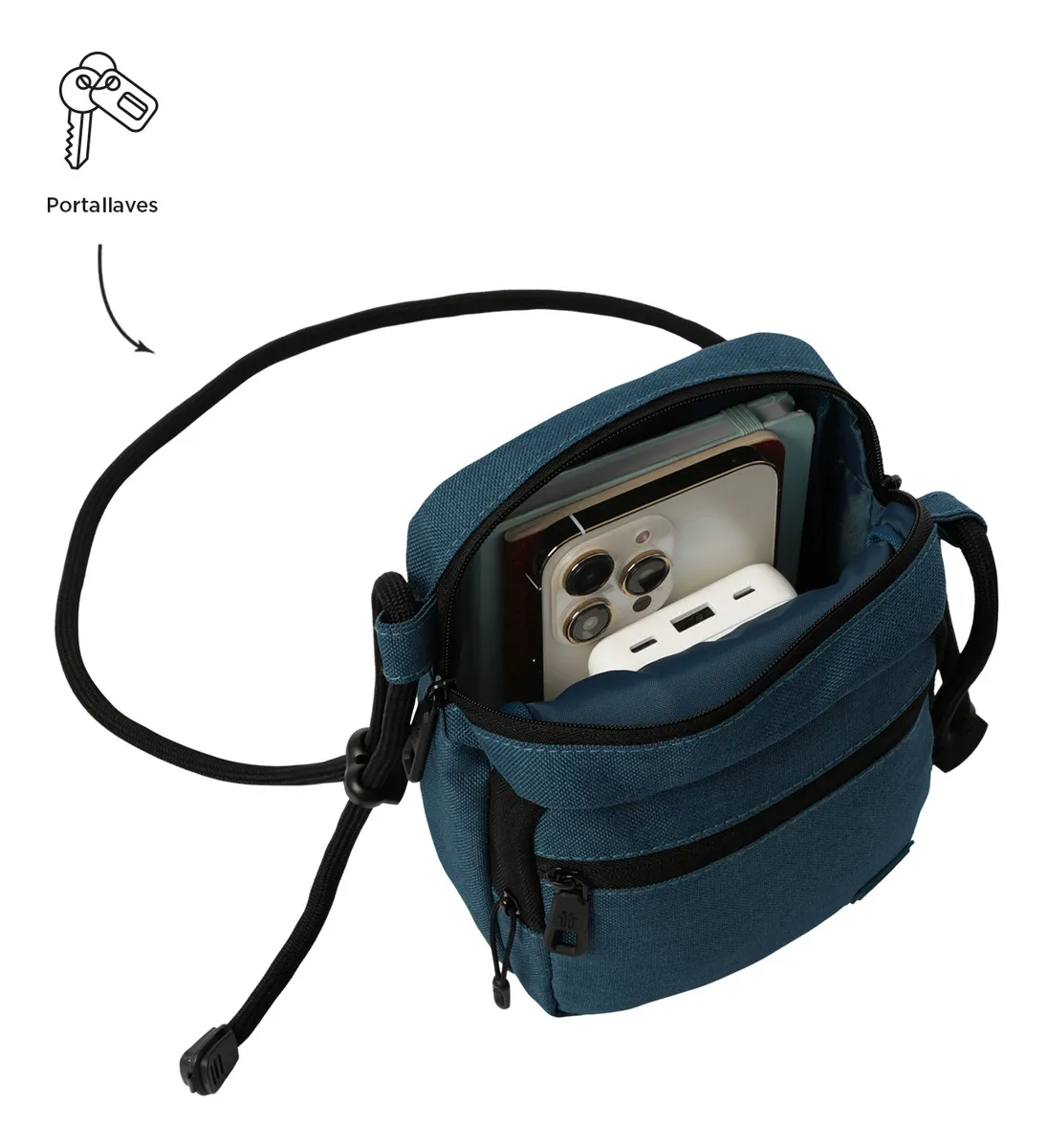El Bolso Riva destaca a primera vista por su acabado en poliéster melange, una textura que no solo le otorga una apariencia premium y moderna en color azul, sino que también ofrece una resistencia superior al desgaste diario. Su tamaño pequeño es engañosamente espacioso, permitiendo llevar lo que realmente importa (celular, billetera, llaves y documentos) sin el volumen estorboso de un morral tradicional.