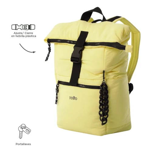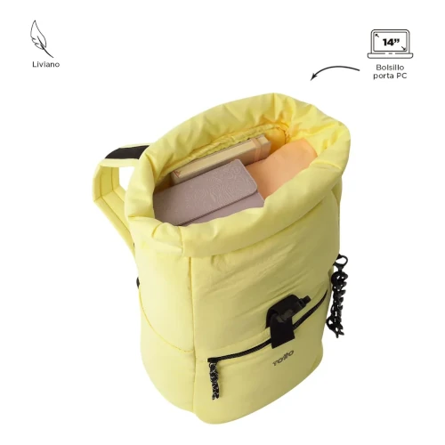 Totto ha diseñado este morral teniendo en cuenta la fisionomía femenina y la comodidad en el uso prolongado. El espaldar ergonómico cuenta con un acolchado estratégico que se adapta a la espalda, proporcionando soporte y facilitando la ventilación.