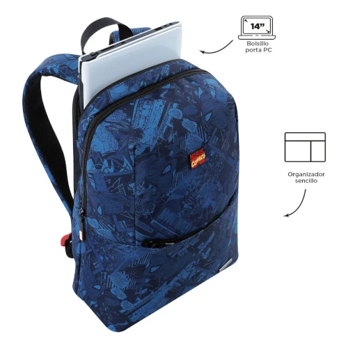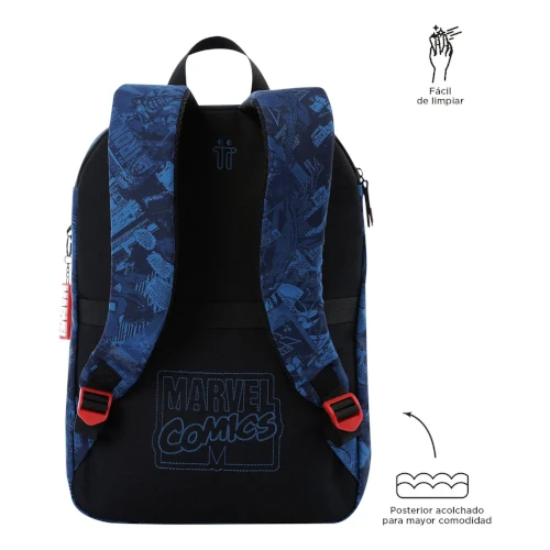 Llevar libros, cuadernos y accesorios personales requiere un soporte adecuado. El Morral Marvel Blue M incorpora un espaldar ergonómico acolchado que se adapta a la espalda del usuario, facilitando una postura correcta y reduciendo la fatiga.